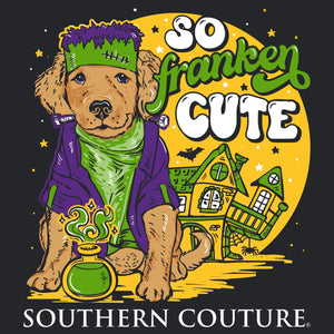 This Southern Couture Classic Frankin Cute Puppy Halloween T-Shirt will have heads turning and tails wagging! Complete your spooky season look and make 'em bark with this paw-fect addition to your wardrobe!