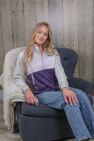 Stay warm and comfy in this stylish Simply Southern Q-ZIP Color Block Plum Long Sleeve Pullover Jacket! Its soft construction, flattering fit, and classic color block design are sure to keep you feeling cozy and looking great whatever the occasion. Enjoy warmth and fashion in one stylish package!