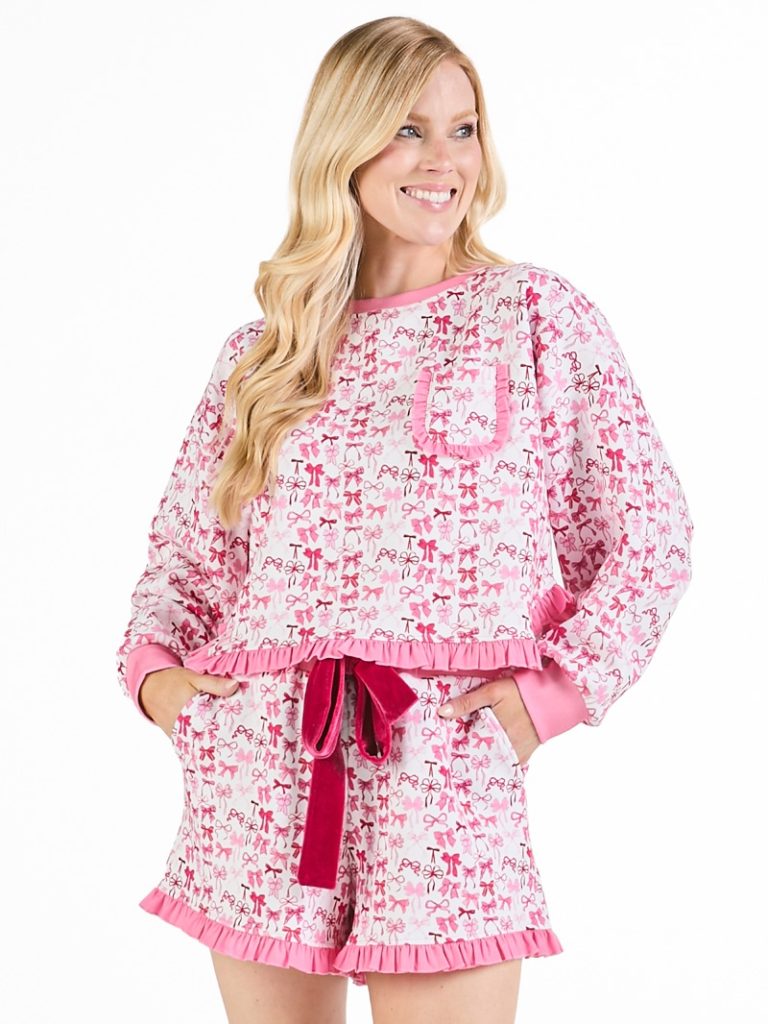 Simply Southern Bow Ruffle PJ Shorts & Long Sleeve T-Shirt Set
