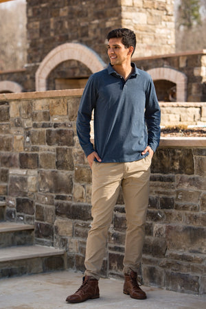 Simply Southern Classic Heather Navy Unisex Polo Long Sleeve T-Shirt