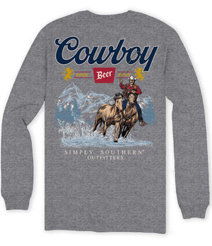 Cowboy up with the Simply Southern Cowboy Beer Unisex Long Sleeve T-Shirt, perfect for those who love to have a good time. This shirt features a fun design and comfortable fit, making it a must-have for any casual outing. So grab a cold one and rock this stylish tee.