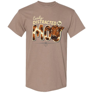 Get ready to stand out in the crowd with our GGO-2799 Distracted by Moo t-shirt in the color Brown Savana! Crafted from 100% soft cotton, this playful short-sleeve shirt keeps you comfy all day long. Perfect for cow lovers and anyone who simply appreciates a good laugh. Available in sizes S through 3XL. Moo-ve over, boring basics!