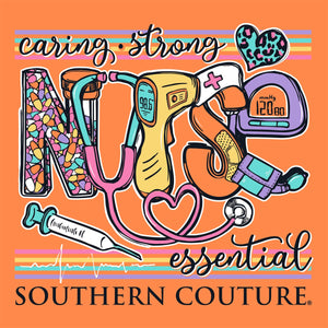 This Southern Couture nurse T-shirt is the perfect blend of hip and helpful. Show the world you care while making a bold fashion statement! This cool and comfy Tee will keep you looking sharp while you're busy healing hearts. Feel strong, stylish, and super supportive in this Classic Caring Strong Nurse T-Shirt!