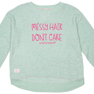 Simply Southern Messy Hair Terry Pullover Soft Crew Long Sleeve T-Shirt