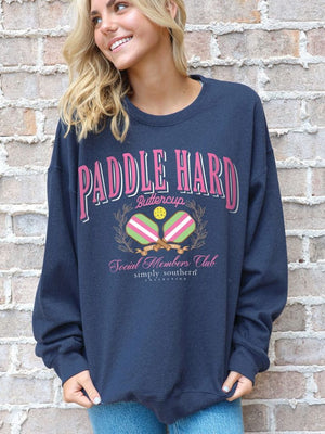 Step up your sweatshirt game with the Simply Southern Paddle Hard Long Sleeve Crew Sweatshirt. Featuring a playful paddle graphic and a comfortable fit, this sweatshirt will have you looking cool while staying cozy. Don't just wear any old sweatshirt, paddle hard in style with this unique piece.