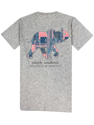 -Lightweight cotton blend for easy, all-day wear. -Stay stylish with the playful elephant tracker patch design. -Show off your love for nature and quirky fashion. Stay stylish and comfortable with the Simply Southern Elephant Tracker Patch T-Shirt. Made with a lightweight cotton blend, it's perfect for all-day wear. The playful elephant patch design adds a touch of quirky fashion to your outfit. Show off your love for nature in a fun and unique way!