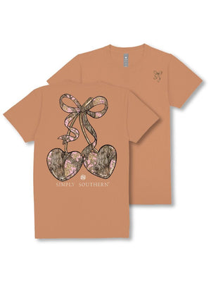 Show off your playful side with the Simply Southern Camo Cherry Bow T-Shirt! Featuring a fun camo pattern paired with a bright cherry bow graphic, this tee brings a sweet twist to classic outdoor style. Made for comfort and casual days, it’s perfect for anyone who loves a mix of country charm and cute details.