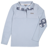 This soft polyester/spandex pullover features a quarter button down neckline. Includes a solid color body with a patterned color and elbow patch.