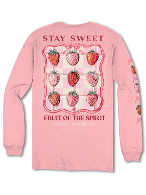 Add a splash of sweetness to your wardrobe with the Simply Southern Stay Sweet Strawberry Long Sleeve T-Shirt. Crafted for comfort, its cozy fit and vibrant strawberry design bring a fun, fresh vibe to any casual day. Perfect for layering or wearing solo, this tee keeps you charming and comfy all day long. Stay sweet, stay stylish!