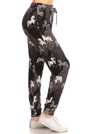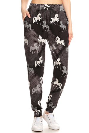 Black White Gray Horse Print Soft Lounge Jogger Pants