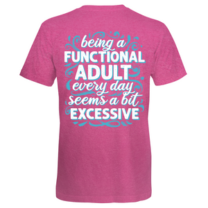 Embrace your inner quirkiness with the Southern Attitude Functional Adult Every Day T-Shirt. Featuring a playful design that pokes fun at the idea of being a "functional adult," this shirt is perfect for those who don't take life too seriously. Made with quality materials, it's both comfortable and stylish for all your daily adventures.
