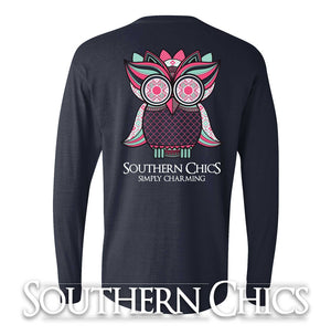 Southern Chics Charming Preppy Owl Bow Girlie Long Sleeve Bright T Shirt