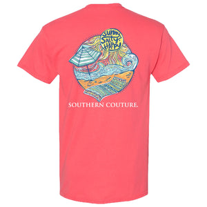 Embrace the sunny and salty lifestyle with this Southern Couture Classic T-Shirt. Made with soft fabric, this tee features a playful "Sunny Salty Happy" design that will surely make you smile. Perfect for any casual day out, spread good vibes with this quirky and comfortable tee.