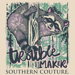 Show off your mischievous side with the Southern Couture Classic Troublemaker Raccoon T-Shirt! This stylish shirt features a fun print of a raccoon, sure to brighten your wardrobe and bring out your creative self.