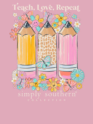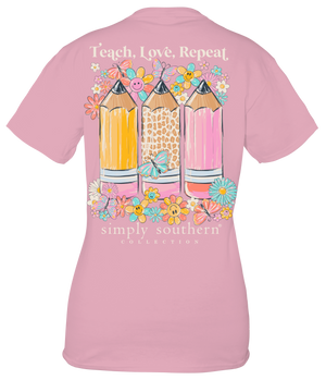 Spread love and positivity with the Simply Southern Teach Love Repeat T-Shirt. Made with soft cotton, this playful tee features a unique design that showcases your fun-loving personality. Perfect for everyday wear, it's a reminder to teach love and keep the good vibes going.