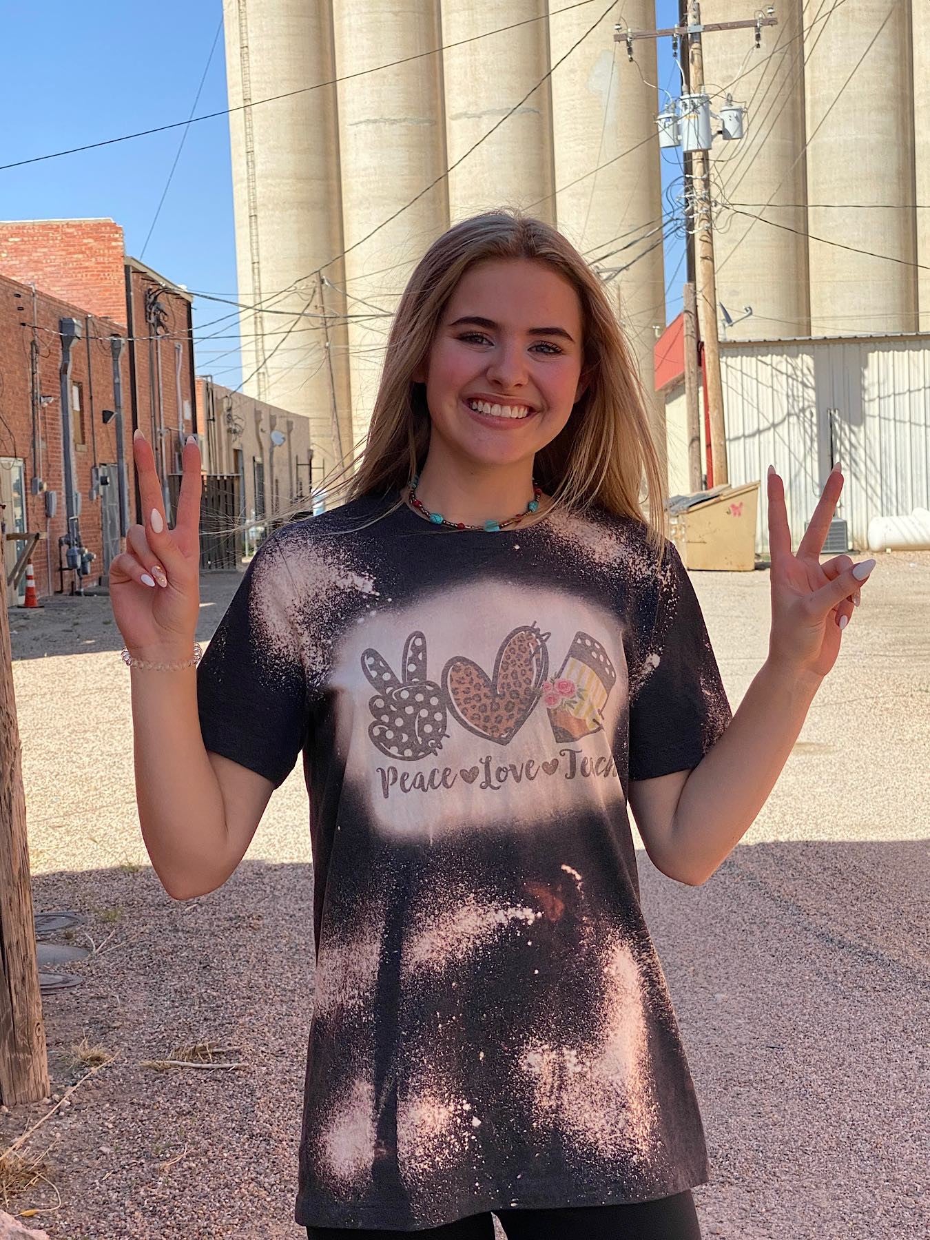 Peace Love Teach Teacher Bleached Dye Canvas Girlie T Shirt