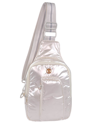 Sling into style with the Simply Southern Preppy Metallic Sling Bag! Available in chic white or playful pink, this bag is perfect for any fashion-forward individual. Show off your unique style with a touch of metallic and preppy charm. (Bag only, accessories not included.)