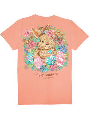 Hop into spring with this Simply Southern Easter Bunny Peach T-Shirt! Made with soft, breathable fabric, this shirt features a playful bunny design that'll have you feeling festive and stylish. Perfect for Easter egg hunts or just lounging around, this tee is a must-have addition to your wardrobe. Hop to it and grab one today!