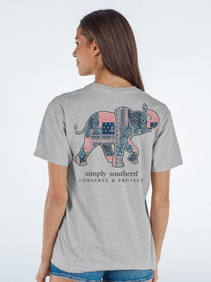 -Lightweight cotton blend for easy, all-day wear. -Stay stylish with the playful elephant tracker patch design. -Show off your love for nature and quirky fashion. Stay stylish and comfortable with the Simply Southern Elephant Tracker Patch T-Shirt. Made with a lightweight cotton blend, it's perfect for all-day wear. The playful elephant patch design adds a touch of quirky fashion to your outfit. Show off your love for nature in a fun and unique way!