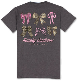 Add a touch of camo to your wardrobe with the Simply Southern Multi Camo Bows T-Shirt. This playful tee features a unique twist on the classic camouflage print with colorful bows. Stand out from the crowd and show off your quirky style with this fun and comfy t-shirt!