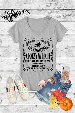 Crazy Witch Love Me or Hate Me Halloween Canvas Girlie V-Neck T Shirt