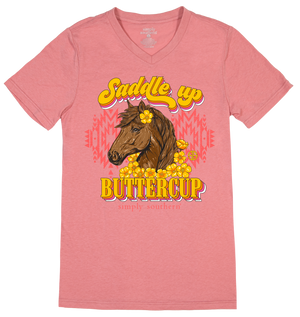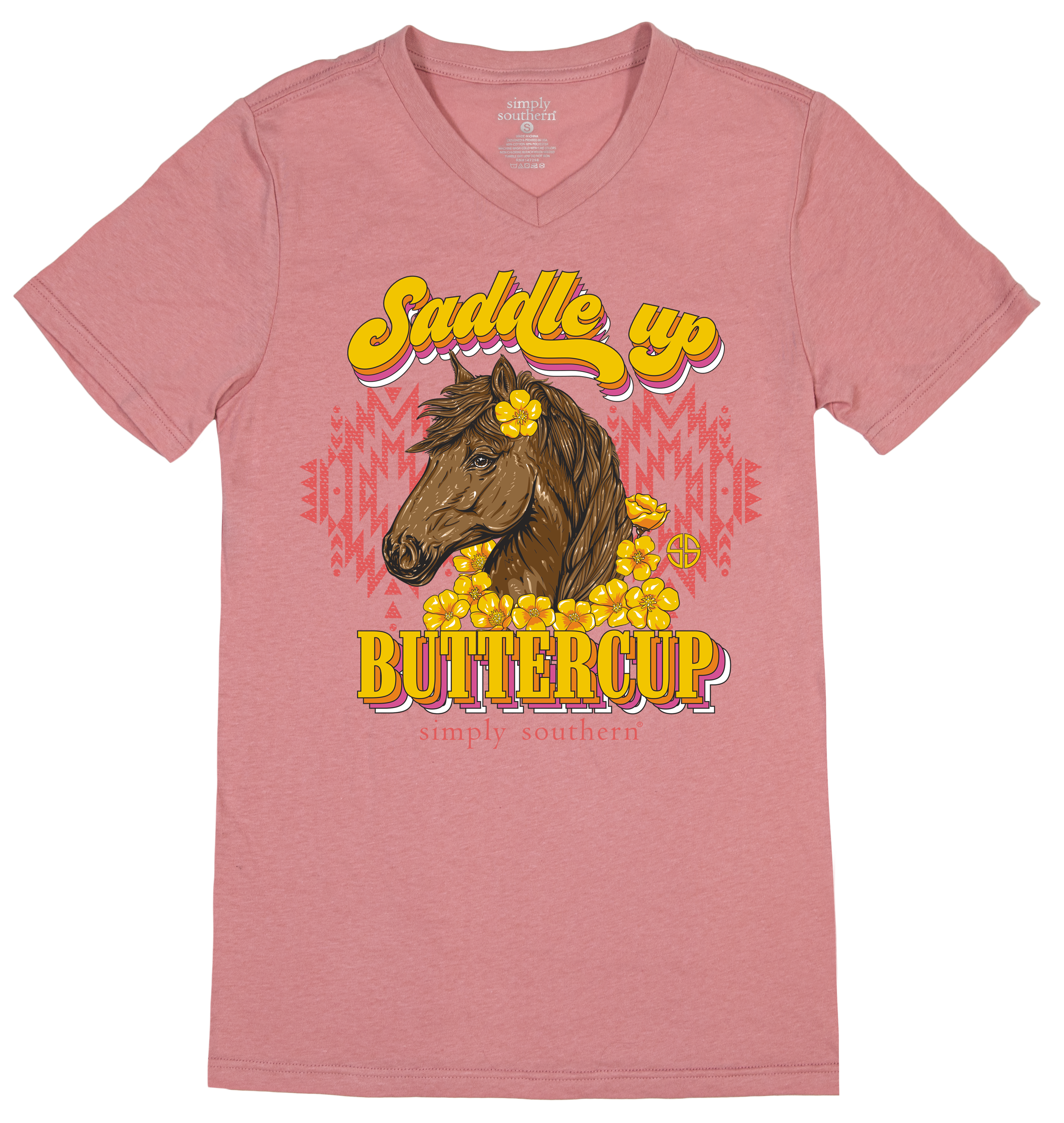 Simply Southern Saddle Up Buttercup V-Neck Collection T-Shirt