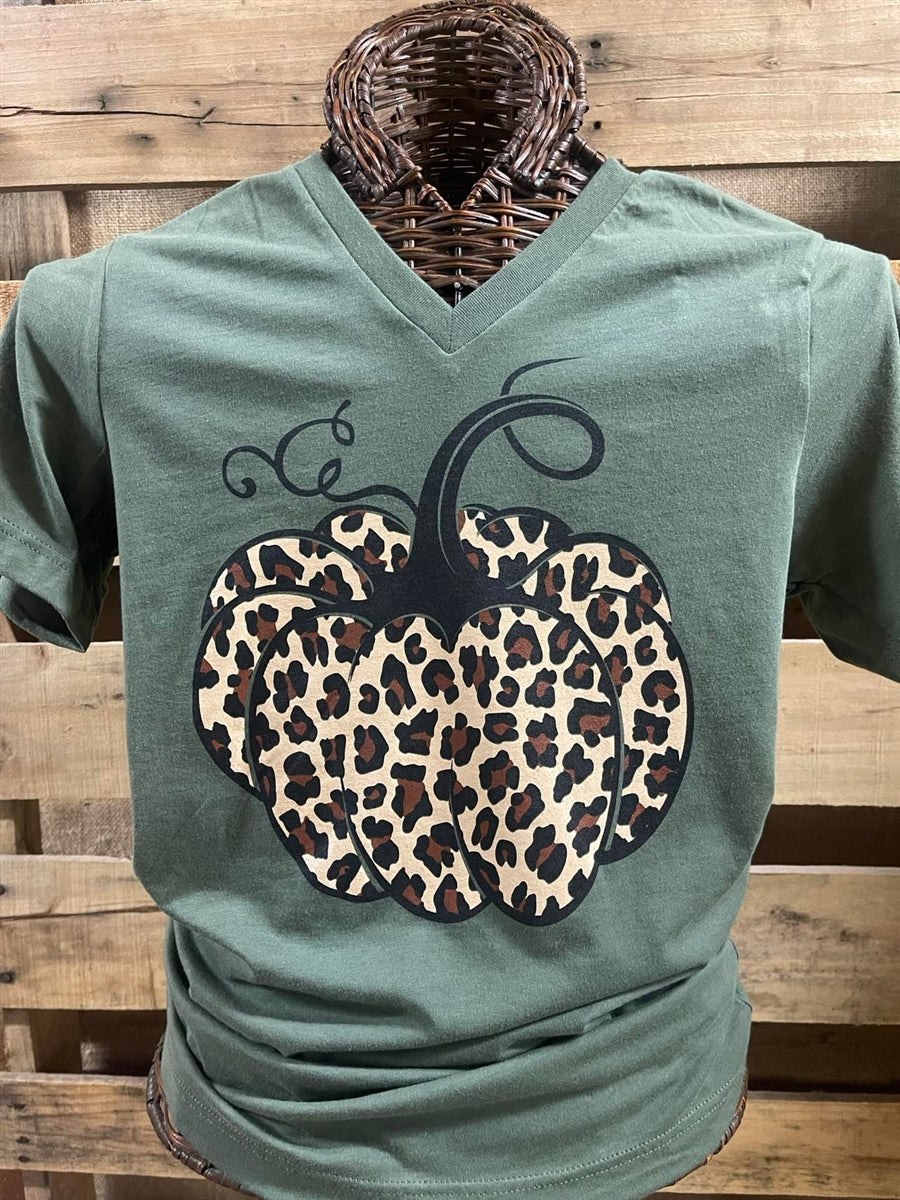 Southern Chics Apparel Leopard Pumpkin Canvas V-Neck T-Shirt
