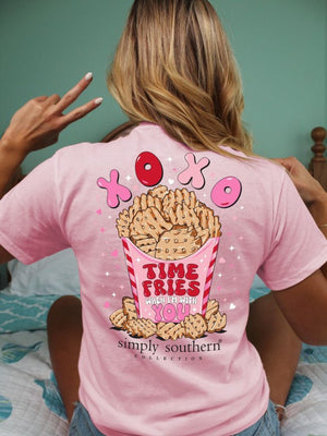 Let the world know how you feel with the Simply Southern XOXO Time Fries T-Shirt! The friendly reminder will make sure you always have a little extra love to spread around. Get the comfy cotton shirt and show your loved ones you care – XOXO time, any time!