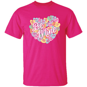Get ready for the season of love with our 100% cotton BE MINE t-shirt. This short-sleeved shirt features a playful "BE MINE" design with hearts, perfect for Valentine's Day. Show your love in style!