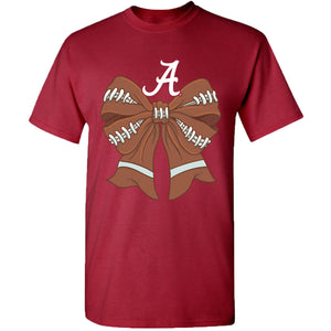 Score a touchdown with this Alabama Roll Tide Football Bow T-Shirt! Show off your team spirit with this unique design that combines your love for football and fashion. Perfect for game days or any day, this shirt will have you cheering on the Tide in style. Roll Tide!