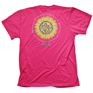 Follow the Son in this feminine “Son Flower” Cherished Girl® T-Shirt in Cyber Pink. Just like the grand blossoms of golden-headed sunflowers stretch toward the rays of the sun, you can turn your heart toward Jesus, the King of Kings. He will guide your paths and direct your ways, when you take up the cross and follow Him.