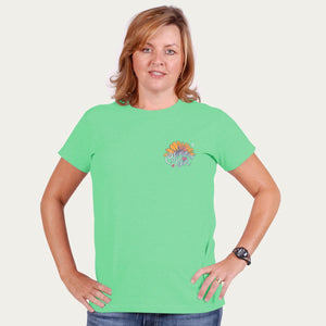 Let your faith bloom in this “Consider the Lilies” T-shirt in Mint Green by Cherished Girl®. You don’t have to strive to be a beautiful daughter of God; He already made you in His image, and you are His unique, glorious creation. Diminutive butterflies dance along the tops of a delightful array of daisies, roses, daffodils, and of course — lilies.