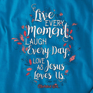Our “Live Every Day” Long-Sleeve Cherished Girl® Tee in Pacific Blue is a sweet reminder to cherish the now and to “Live Every Moment, Laugh Every Day, and Love as Jesus Loves Us.” It’s a source of biblical wisdom on-the-go, and a great way to start conversations about Jesus.