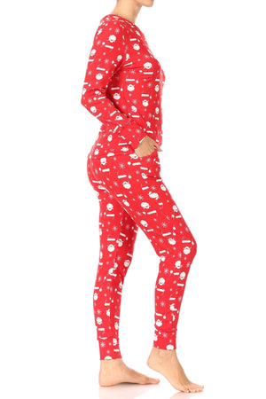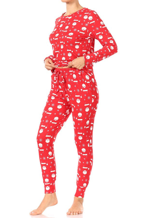 Christmas Santa Snowflakes Fleece Lined Lounge Pajama Set Pants and Shirt