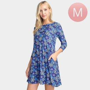 Christmas Snowflake Print Holiday Casual A-Line Dress