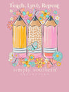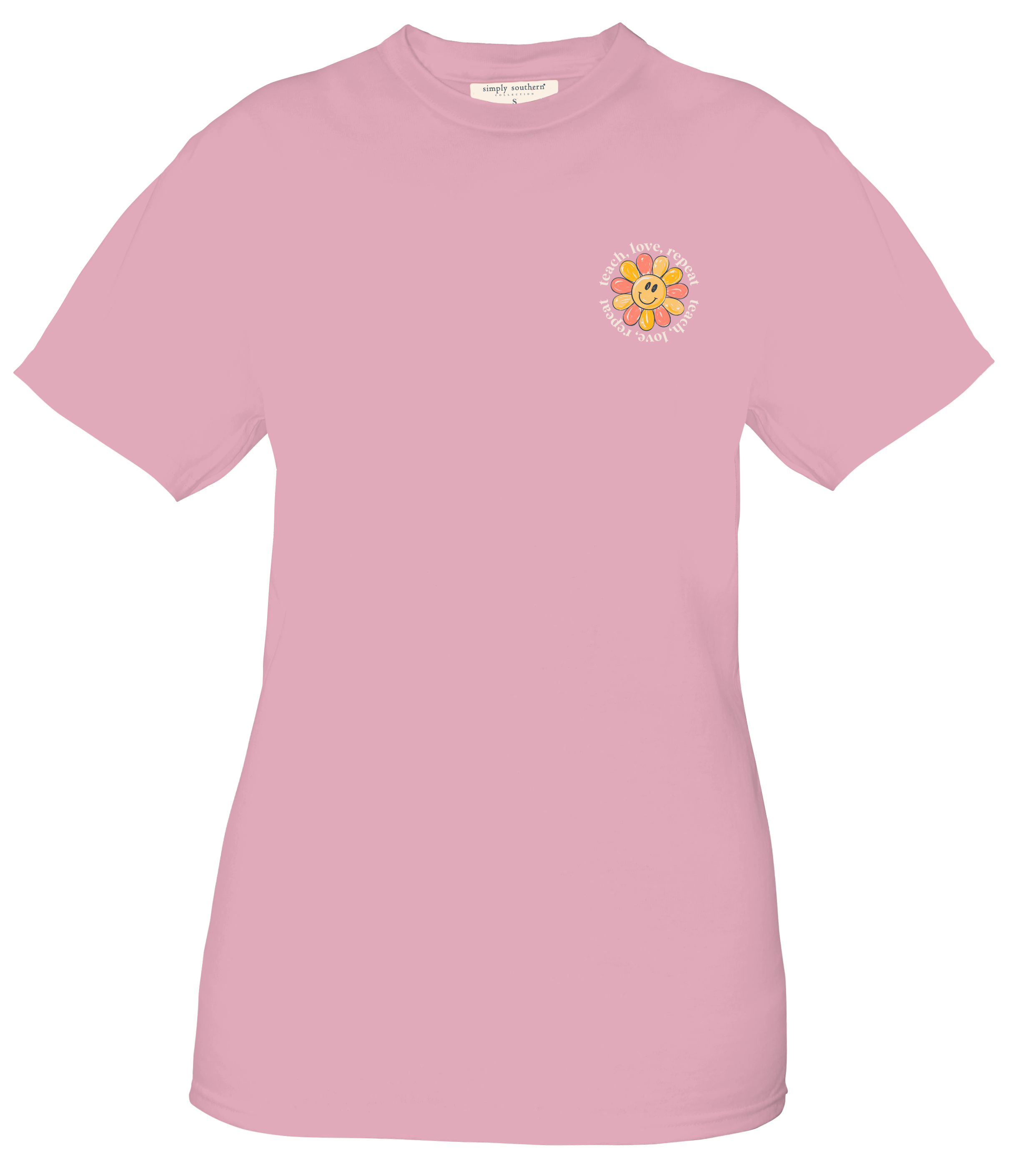 Spread love and positivity with the Simply Southern Teach Love Repeat T-Shirt. Made with soft cotton, this playful tee features a unique design that showcases your fun-loving personality. Perfect for everyday wear, it's a reminder to teach love and keep the good vibes going.