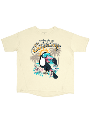 "Live everyday like it's Saturday with this Simply Southern Boxy T-Shirt! Made from 100% cotton, it's perfect for lounging or casual days. Say goodbye to boring weekdays and embrace the carefree spirit of the weekend with this fun and comfy tee."