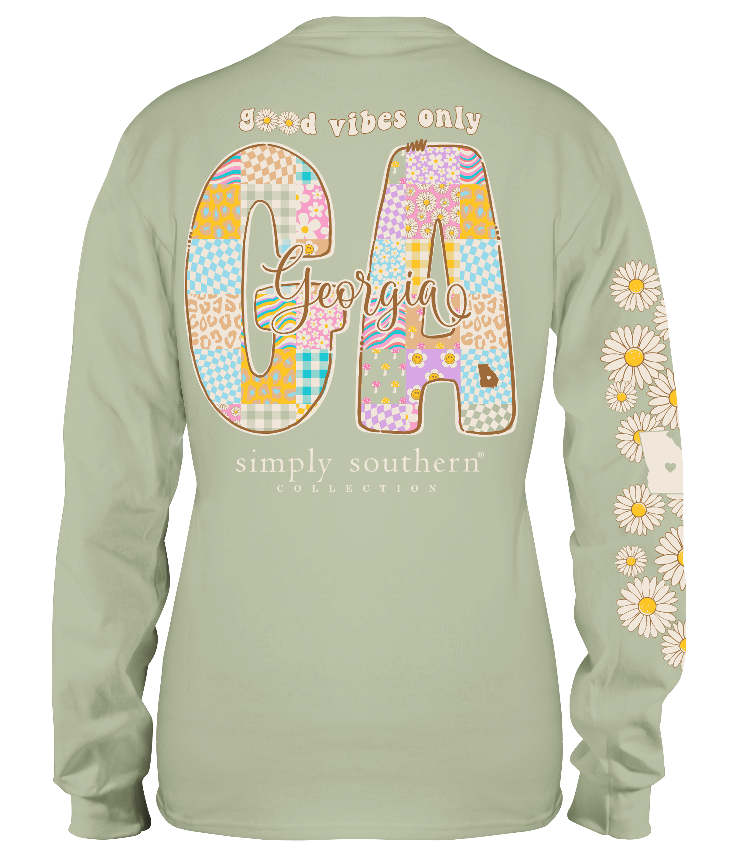 Experience the cool and groovy vibes of the Simply Southern Good Vibes Only Georgia Long Sleeve T-Shirt! With its classic design, you'll feel inspired and energized like never before!