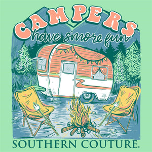 Look good and feel great in our Southern Couture Classic Campers Have Smore Fun T-Shirt! Whether you're lounging at the campsite, or just s'MORing up the look of your wardrobe, you'll be sure to set flames to any ordinary outfit. Get ready to roast the competition, looking stylish and cozy!