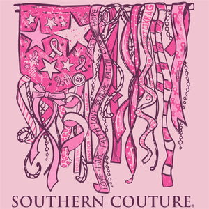 Show your support in style with this stylish "Southern Couture Classic Breast Cancer Ribbon Flag T-Shirt." Comfortable and cute, it’s perfect for raising awareness, making a statement, or just showing a little love.