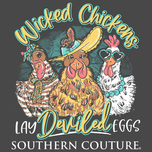 A clucking good time is guaranteed with the Southern Couture Wicked Chickens Comfort Colors T-Shirt. Made with soft and breathable fabric, this tee will keep you comfortable while showing off your quirky side. Perfect for any casual occasion, this shirt is sure to make a statement and have others flocking to join your fun-loving crew.