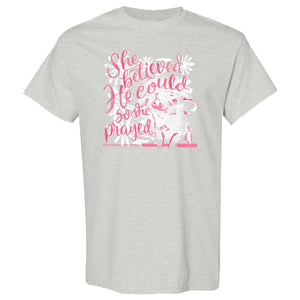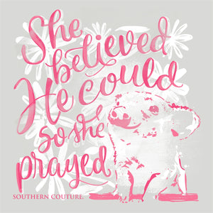 This soft cotton T-shirt celebrates the courage of believing, featuring a gentle reminder to be bold and fearless. Perfect for a special occasion or just everyday wear, the Southern Couture Soft She Believed He Could T-Shirt will encourage you to never give up on your dreams.