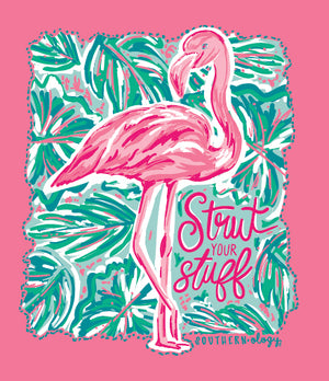 Live like a flamingo and strut your stuff! This NEW Southernology® design is printed on a Comfort Colors crunchberry short sleeve t-shirt.