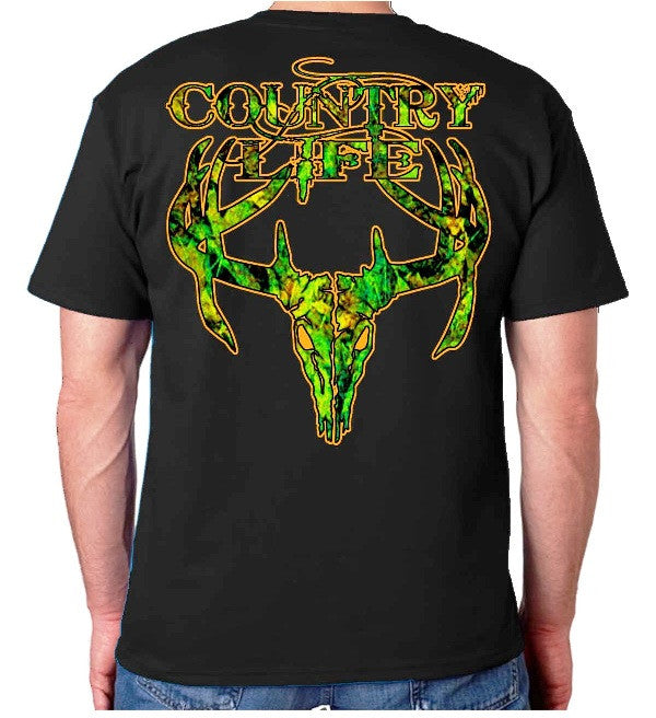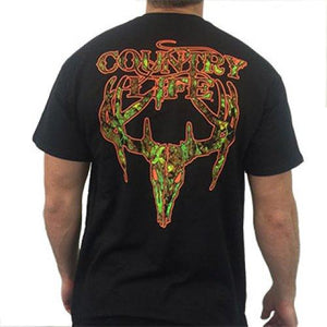 Country Life Outfitters Black & Orange Camo Realtree Deer Skull Head Hunt Vintage Unisex Bright T Shirt
