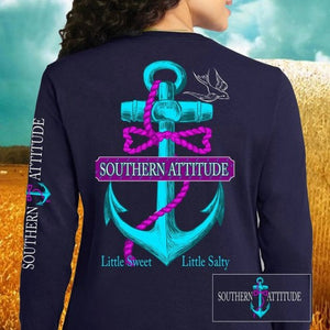 Country Life Outfitters Southern Attitude Anchor Bow Navy Vintage Girlie Bright Long Sleeves T Shirt