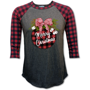 Couture Lightheart Plaid Merry Christmas Raglan Long Sleeve T-Shirt