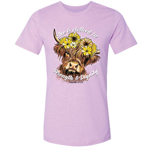 Feel empowered and inspired with 167 Clothed! This short sleeve shirt is made from 99% cotton and 1% polyester, providing comfort and durability. With a powerful message of strength and dignity from the scripture Proverbs 31:25, this Christian shirt is perfect for everyday wear.