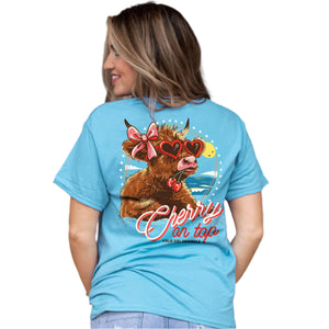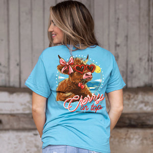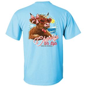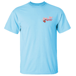 Get ready for some summertime sweetness with the 2752 Cherry on Top Sky Blue shirt! Made of 100% cotton, this girlie girl original graphic tee features short sleeves and also comes in youth sizes. Perfect for those sunny days and preppy vibes. (Your wardrobe will thank you!)