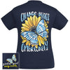 Change brings opportunity! This bright and positive design features a blue butterfly on a yellow daisy. This classic fit, pre-shrunk, jersey knit tee that is made from 6-ounce, 100% cotton