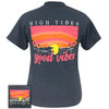 High tides, good vibes will take you straight to the beach in a heartbeat! You can almost feel the sun in the beautiful warm colors. This comfortable, classic fit pre-shrunk jersey knit tee is 6-ounce 50% cotton and 50% polyester.